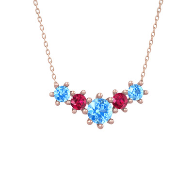 Akuamarin ve rodolit garnet 925 ayar rose altın kaplama gümüş kolye (40 cm rose altın rolo zincir)