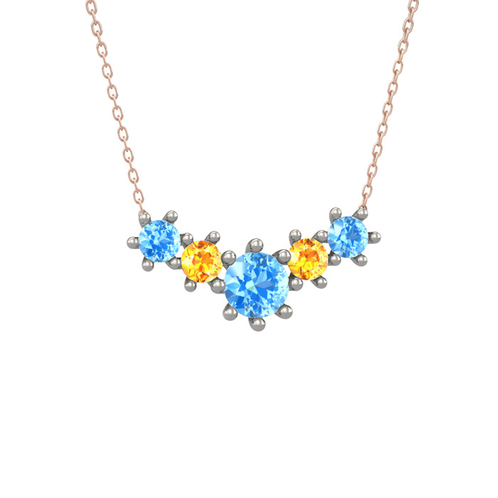 Akuamarin ve sitrin 925 ayar gümüş kolye (40 cm rose altın rolo zincir)