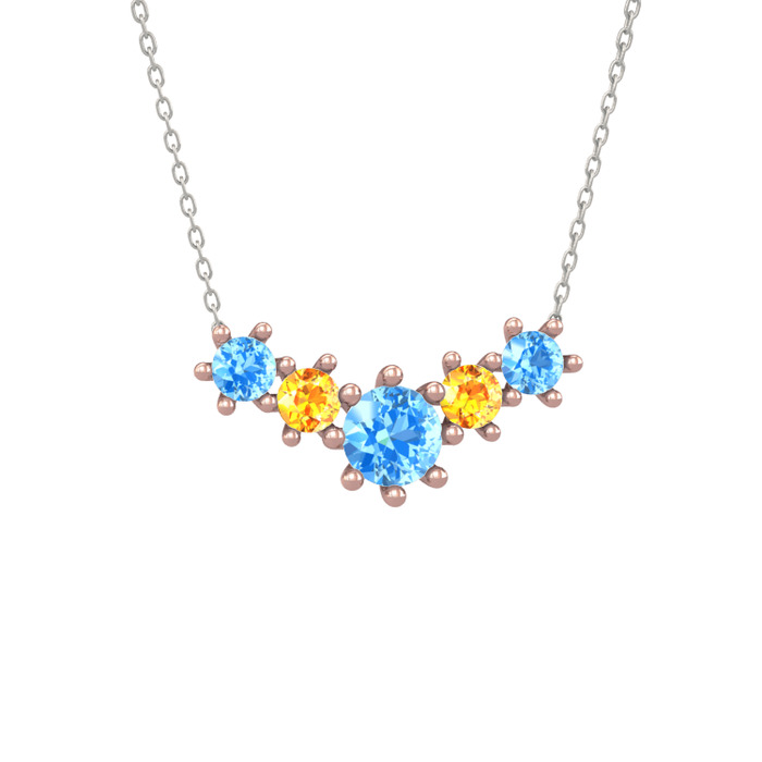 Akuamarin ve sitrin 925 ayar rose altın kaplama gümüş kolye (40 cm beyaz altın rolo zincir)