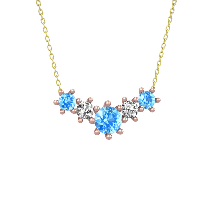 Akuamarin ve swarovski 18 ayar rose altın kolye (40 cm gümüş rolo zincir)