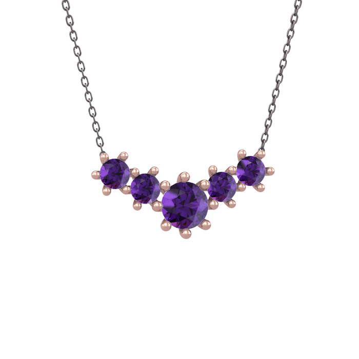 Ametist 8 ayar rose altın kolye (40 cm gümüş rolo zincir)