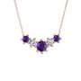 Ametist ve beyaz zirkon 18 ayar rose altın kolye (40 cm rose altın rolo zincir)