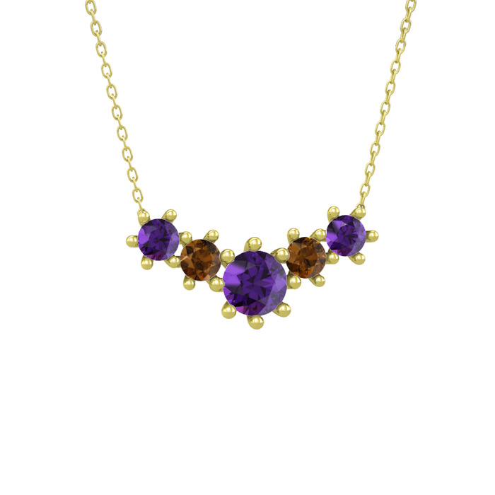 Ametist ve dumanlı kuvars 18 ayar altın kolye (40 cm gümüş rolo zincir)