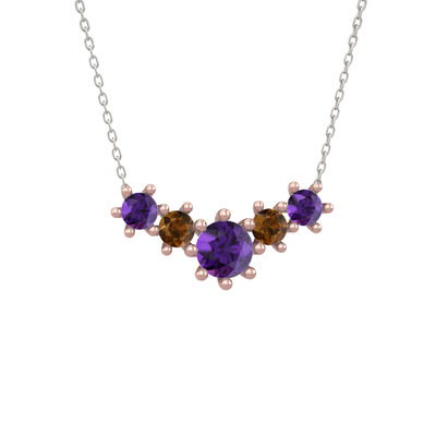 Ametist ve dumanlı kuvars 18 ayar rose altın kolye (40 cm beyaz altın rolo zincir)