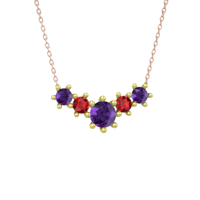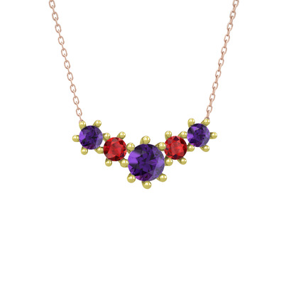 Ametist ve garnet 14 ayar altın kolye (40 cm rose altın rolo zincir)