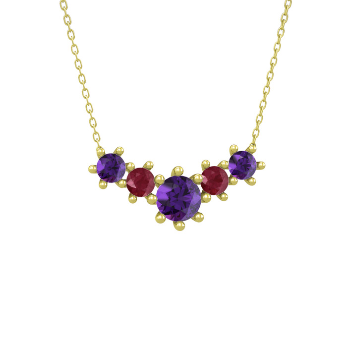 Ametist ve kök yakut 8 ayar altın kolye (40 cm altın rolo zincir)