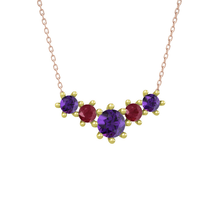 Ametist ve kök yakut 8 ayar altın kolye (40 cm rose altın rolo zincir)