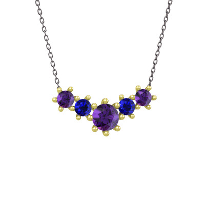 Ametist ve lab safir 14 ayar altın kolye (40 cm gümüş rolo zincir)