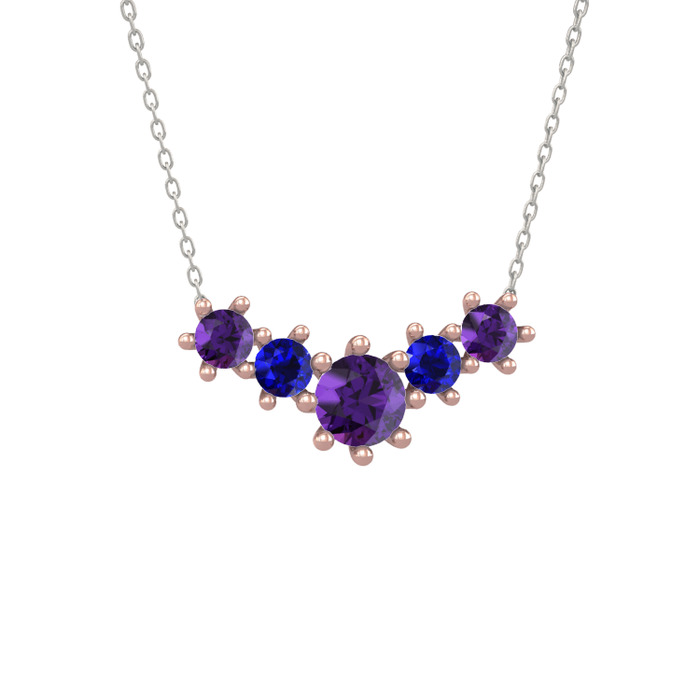 Ametist ve lab safir 18 ayar rose altın kolye (40 cm gümüş rolo zincir)