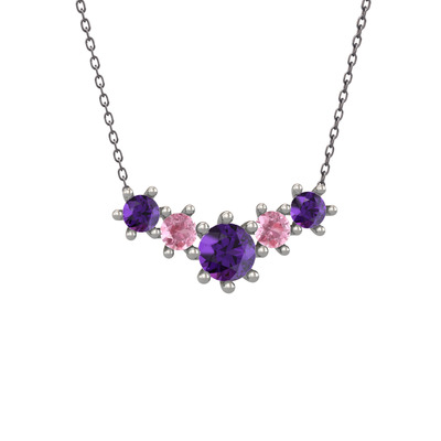 Ametist ve pembe kuvars 18 ayar beyaz altın kolye (40 cm gümüş rolo zincir)