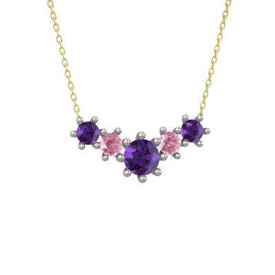 Ametist ve pembe kuvars 925 ayar gümüş kolye (40 cm altın rolo zincir)