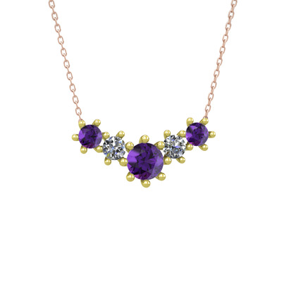 Ametist ve pırlanta 8 ayar altın kolye (0.32 karat, 40 cm rose altın rolo zincir)