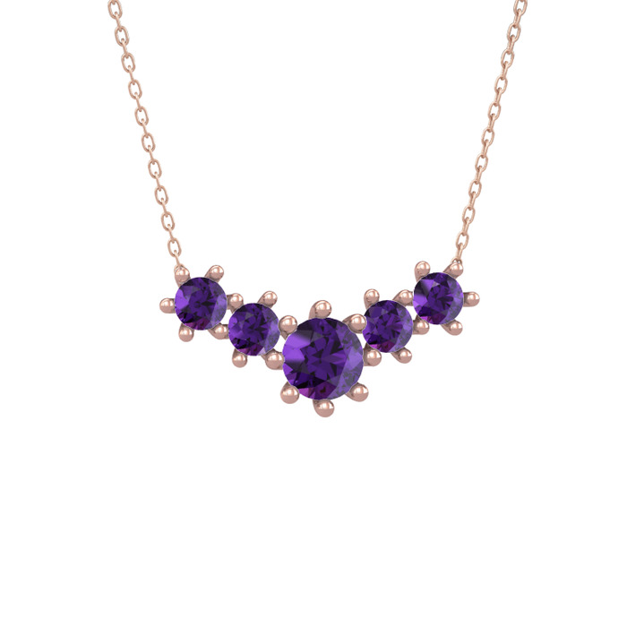 Ametist 925 ayar rose altın kaplama gümüş kolye (40 cm rose altın rolo zincir)