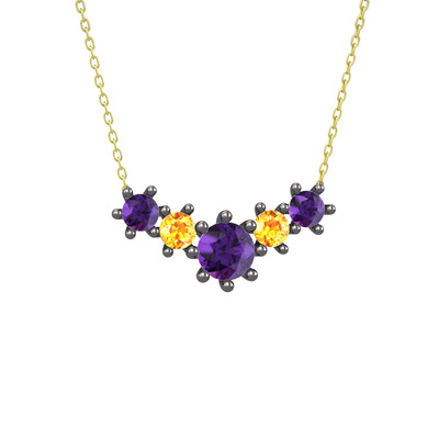 Ametist ve sitrin 925 ayar siyah rodyum kaplama gümüş kolye (40 cm gümüş rolo zincir)