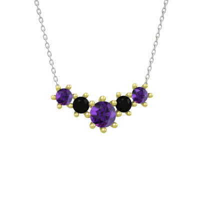 Ametist ve siyah zirkon 14 ayar altın kolye (40 cm gümüş rolo zincir)