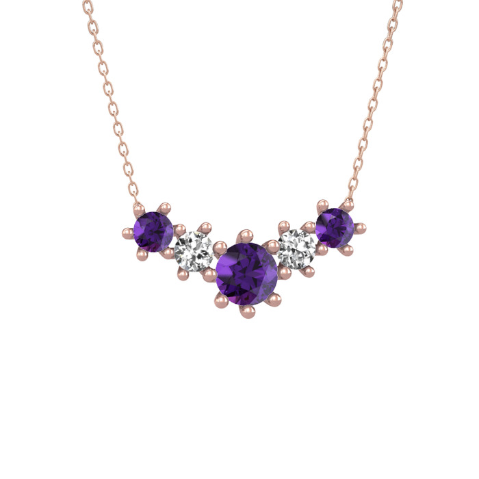 Ametist ve swarovski 8 ayar rose altın kolye (40 cm rose altın rolo zincir)