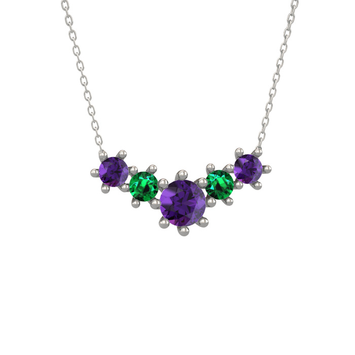 Ametist ve yeşil kuvars 8 ayar beyaz altın kolye (40 cm beyaz altın rolo zincir)