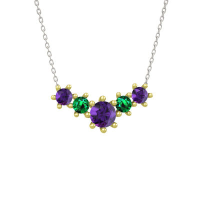 Ametist ve yeşil kuvars 925 ayar altın kaplama gümüş kolye (40 cm beyaz altın rolo zincir)