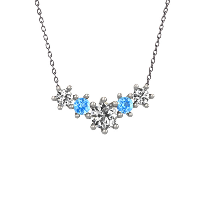Beyaz zirkon ve akuamarin 14 ayar beyaz altın kolye (40 cm gümüş rolo zincir)