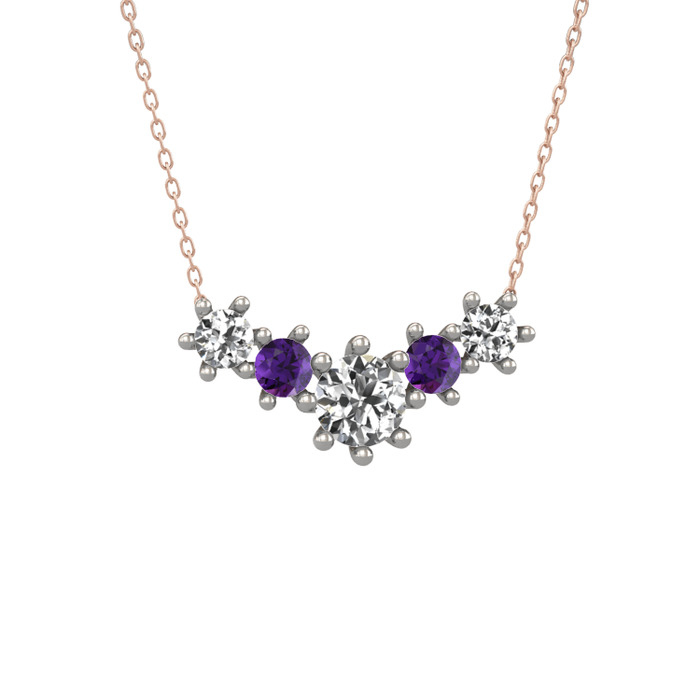 Beyaz zirkon ve ametist 18 ayar beyaz altın kolye (40 cm rose altın rolo zincir)