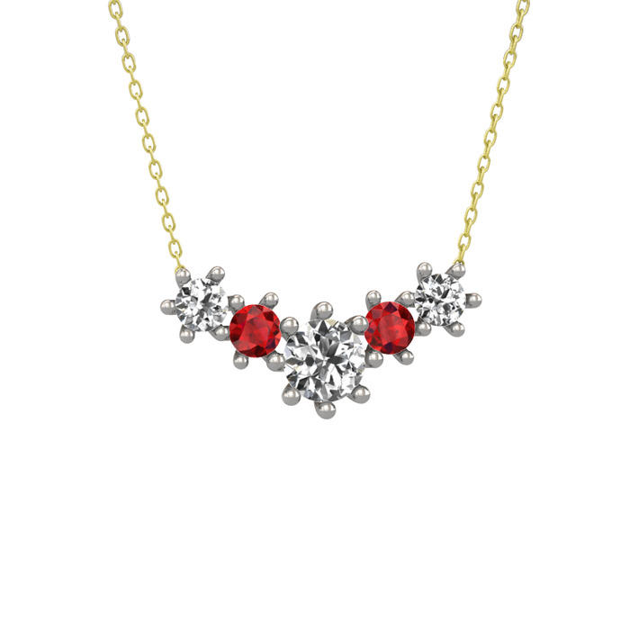 Beyaz zirkon ve garnet 925 ayar gümüş kolye (40 cm altın rolo zincir)