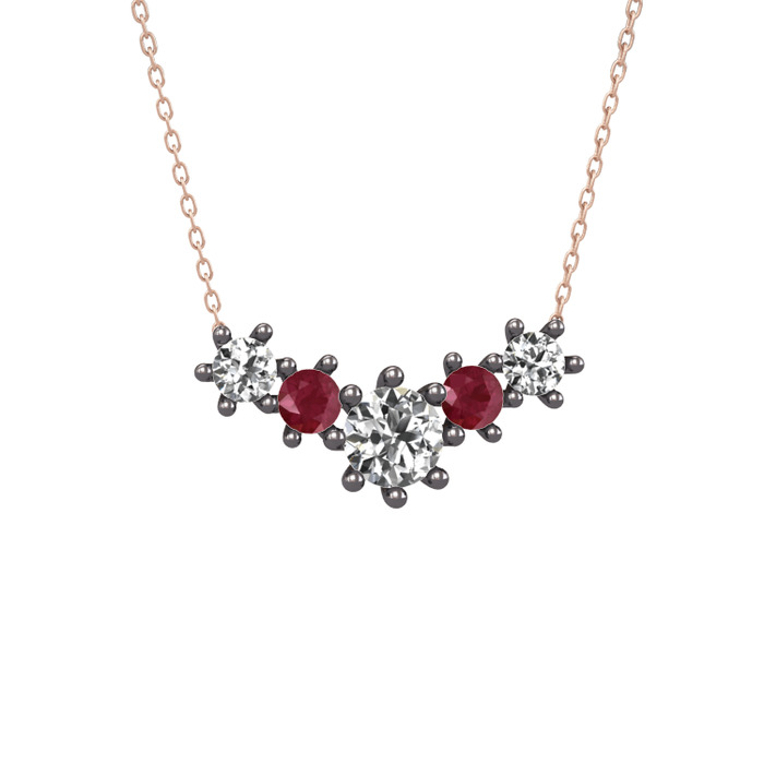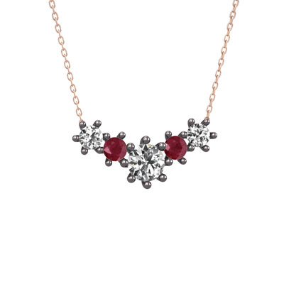 Beyaz zirkon ve kök yakut 925 ayar siyah rodyum kaplama gümüş kolye (40 cm rose altın rolo zincir)