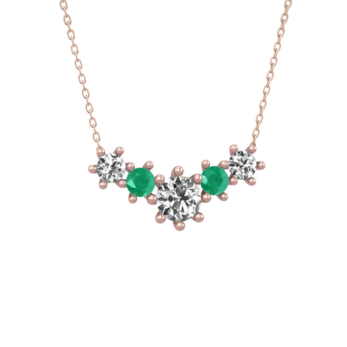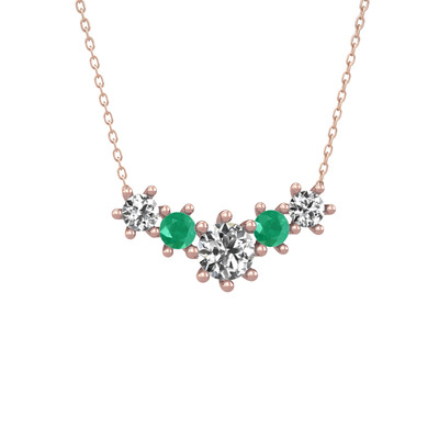 Beyaz zirkon ve kök zümrüt 14 ayar rose altın kolye (40 cm rose altın rolo zincir)