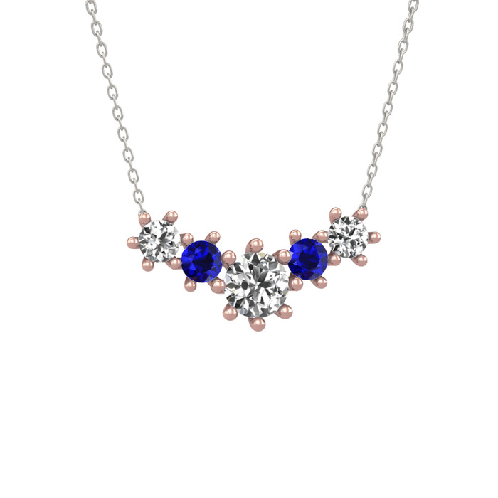 Beyaz zirkon ve lab safir 18 ayar rose altın kolye (40 cm gümüş rolo zincir)