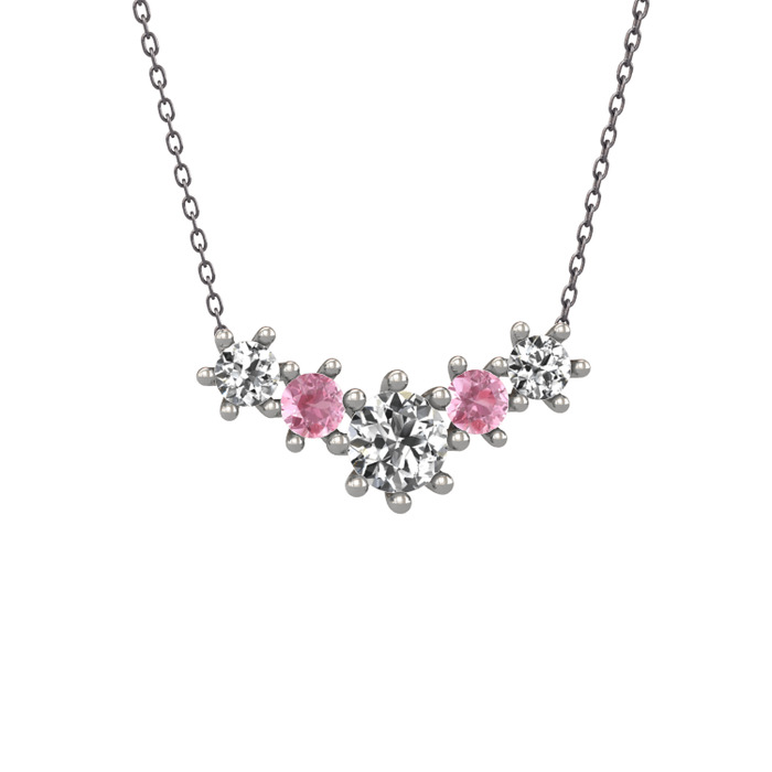 Beyaz zirkon ve pembe kuvars 8 ayar beyaz altın kolye (40 cm gümüş rolo zincir)