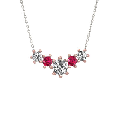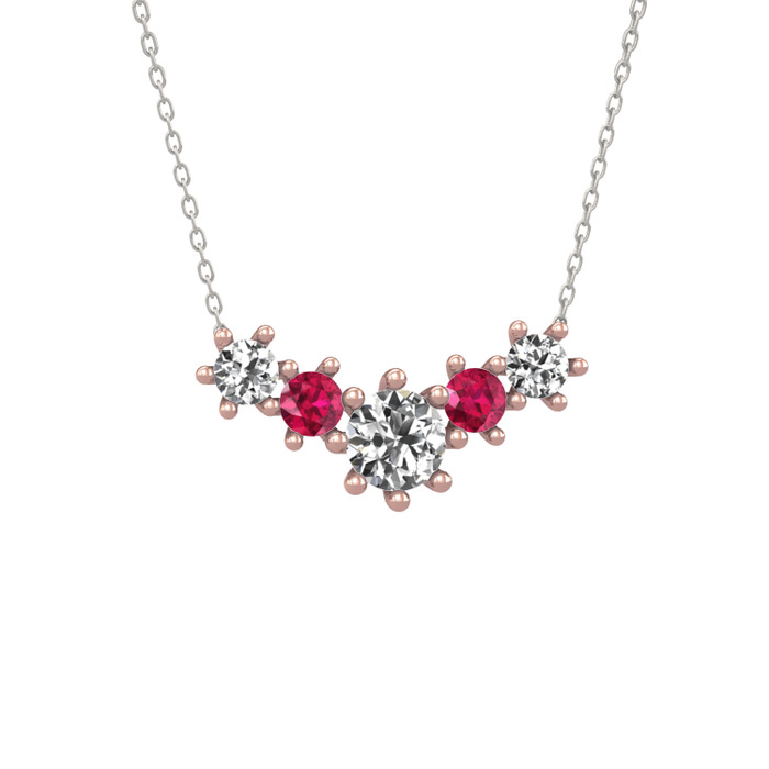 Beyaz zirkon ve rodolit garnet 8 ayar rose altın kolye (40 cm beyaz altın rolo zincir)