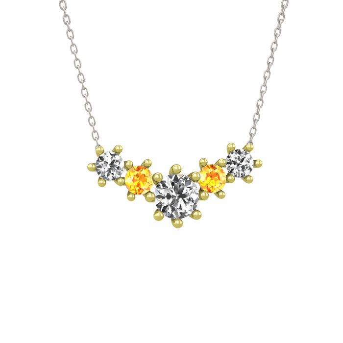 Beyaz zirkon ve sitrin 8 ayar altın kolye (40 cm beyaz altın rolo zincir)