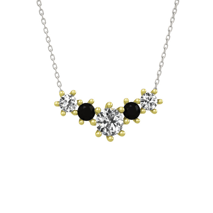 Beyaz zirkon ve siyah zirkon 14 ayar altın kolye (40 cm beyaz altın rolo zincir)