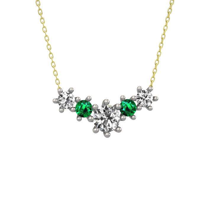 Beyaz zirkon ve yeşil kuvars 18 ayar beyaz altın kolye (40 cm altın rolo zincir)