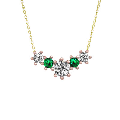 Beyaz zirkon ve yeşil kuvars 18 ayar rose altın kolye (40 cm gümüş rolo zincir)