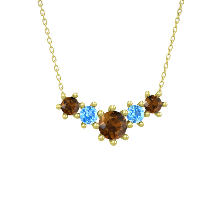 Dumanlı kuvars ve akuamarin 925 ayar altın kaplama gümüş kolye (40 cm altın rolo zincir)