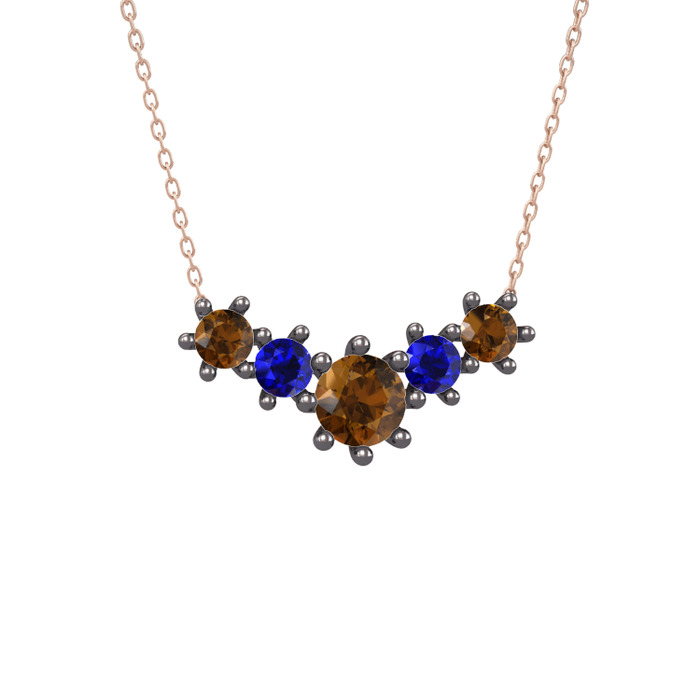Dumanlı kuvars ve lab safir 925 ayar siyah rodyum kaplama gümüş kolye (40 cm rose altın rolo zincir)