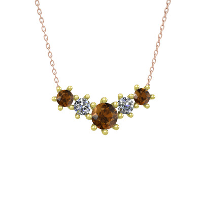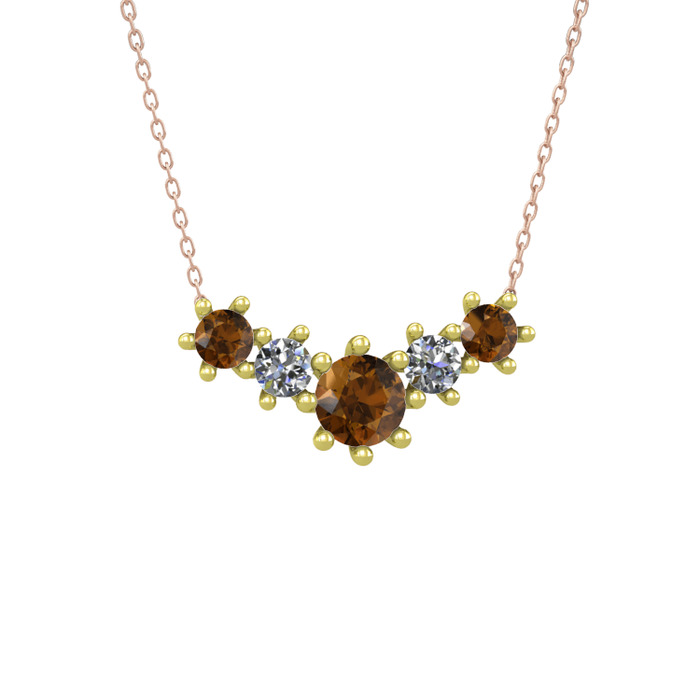 Dumanlı kuvars ve pırlanta 8 ayar altın kolye (0.32 karat, 40 cm rose altın rolo zincir)
