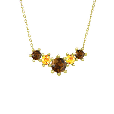 Dumanlı kuvars ve sitrin 8 ayar altın kolye (40 cm altın rolo zincir)