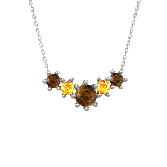 Dumanlı kuvars ve sitrin 925 ayar gümüş kolye (40 cm gümüş rolo zincir)