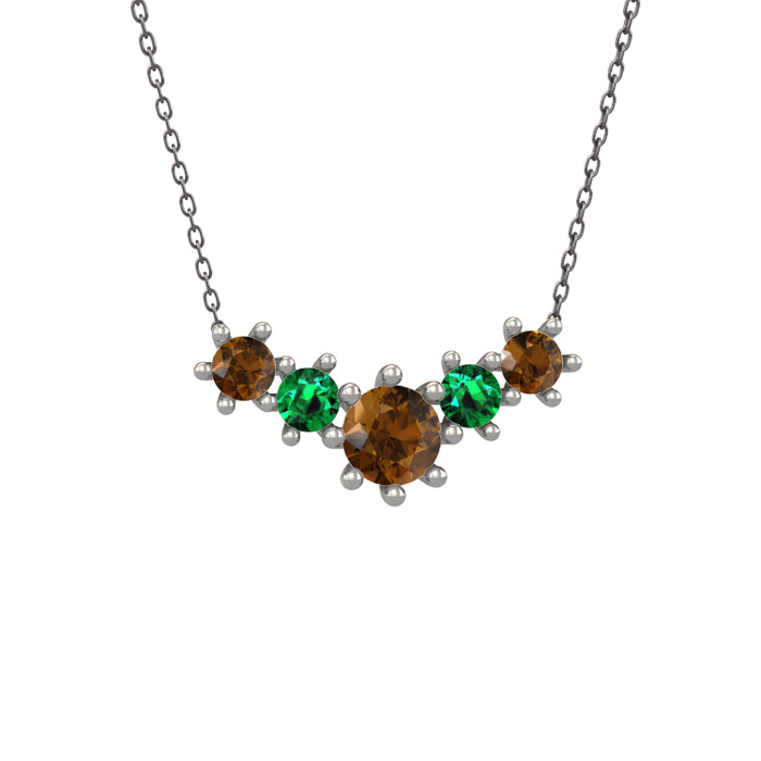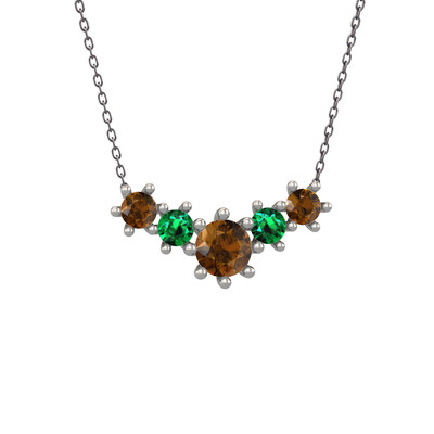 Dumanlı kuvars ve yeşil kuvars 14 ayar beyaz altın kolye (40 cm gümüş rolo zincir)