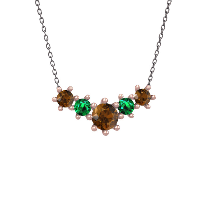 Dumanlı kuvars ve yeşil kuvars 8 ayar rose altın kolye (40 cm gümüş rolo zincir)