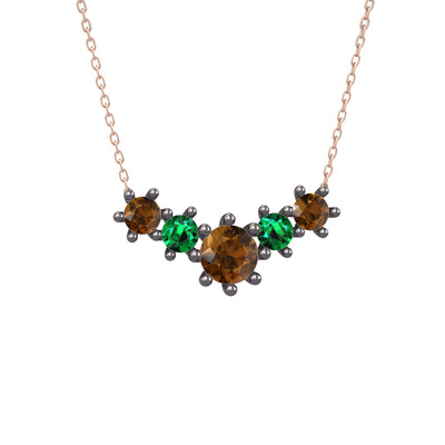 Dumanlı kuvars ve yeşil kuvars 925 ayar siyah rodyum kaplama gümüş kolye (40 cm rose altın rolo zincir)