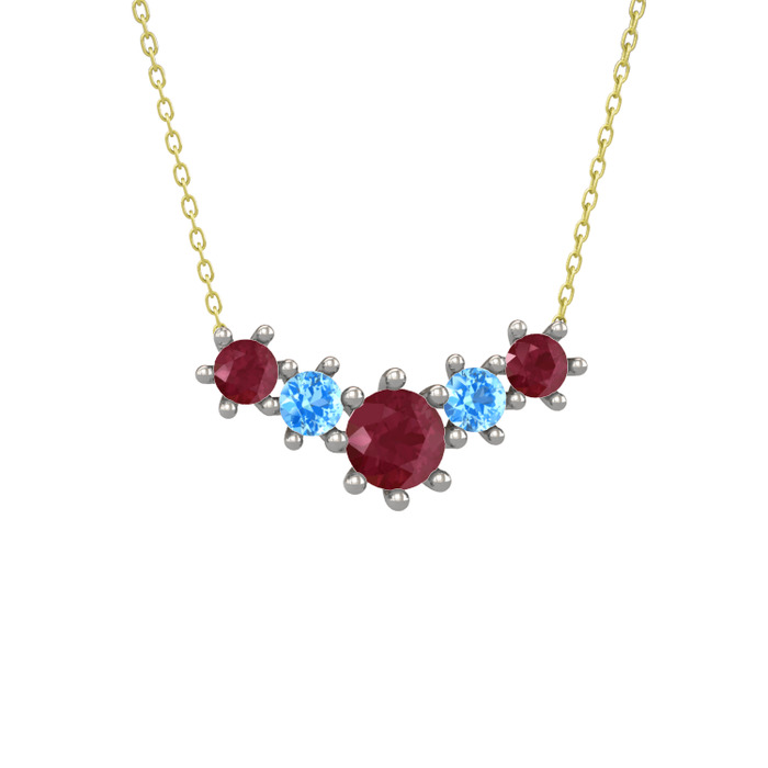 Kök yakut ve akuamarin 18 ayar beyaz altın kolye (40 cm altın rolo zincir)