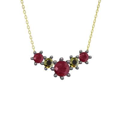 Kök yakut ve peridot 925 ayar siyah rodyum kaplama gümüş kolye (40 cm gümüş rolo zincir)