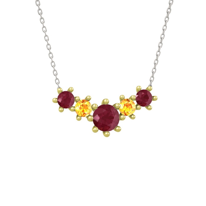 Kök yakut ve sitrin 14 ayar altın kolye (40 cm beyaz altın rolo zincir)