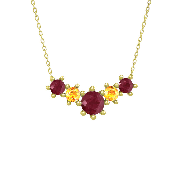 Kök yakut ve sitrin 8 ayar altın kolye (40 cm altın rolo zincir)