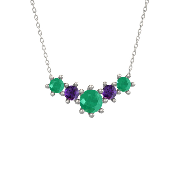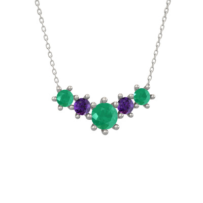 Kök zümrüt ve ametist 8 ayar beyaz altın kolye (40 cm beyaz altın rolo zincir)
