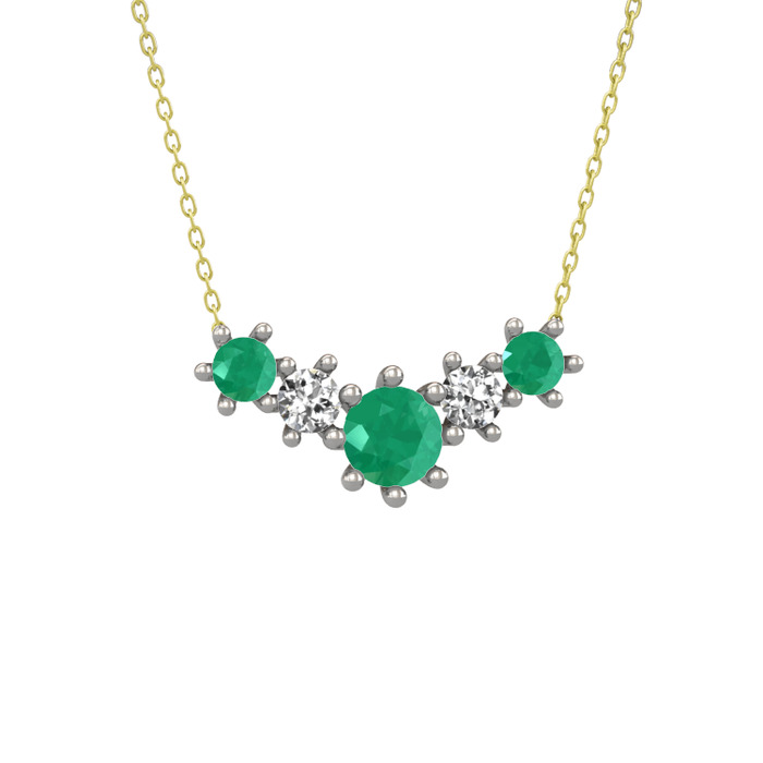 Kök zümrüt ve beyaz zirkon 14 ayar beyaz altın kolye (40 cm altın rolo zincir)