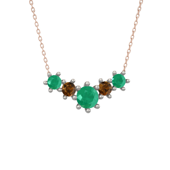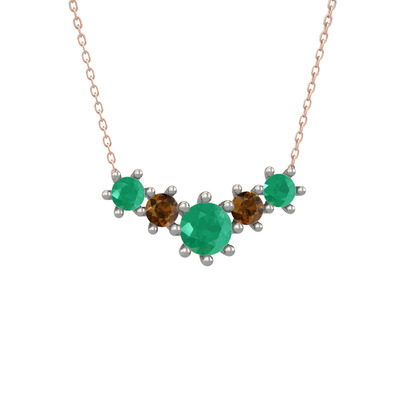 Kök zümrüt ve dumanlı kuvars 18 ayar beyaz altın kolye (40 cm gümüş rolo zincir)