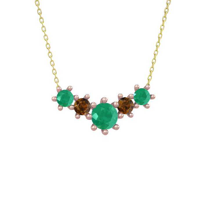 Kök zümrüt ve dumanlı kuvars 8 ayar rose altın kolye (40 cm altın rolo zincir)